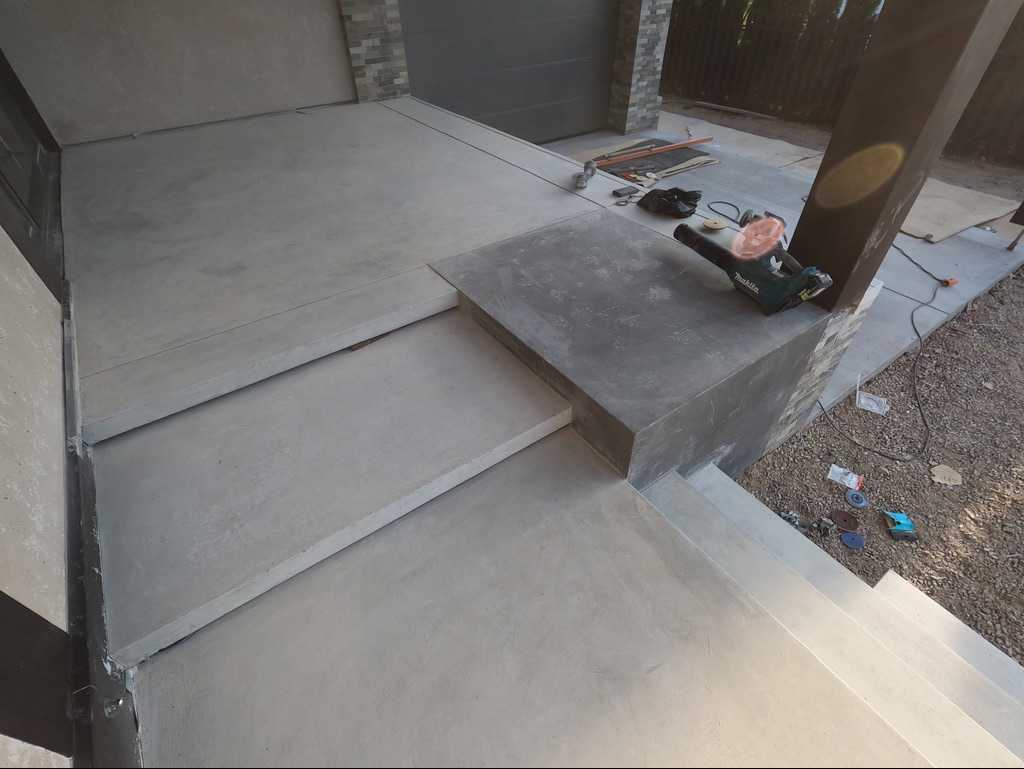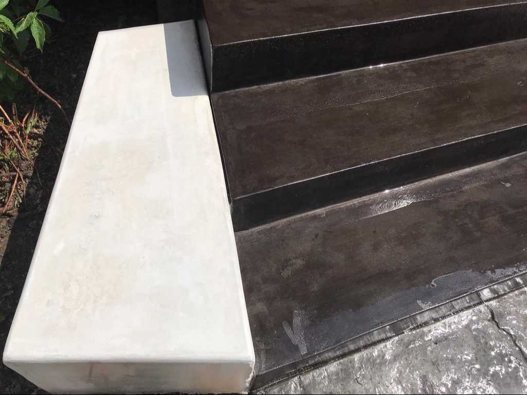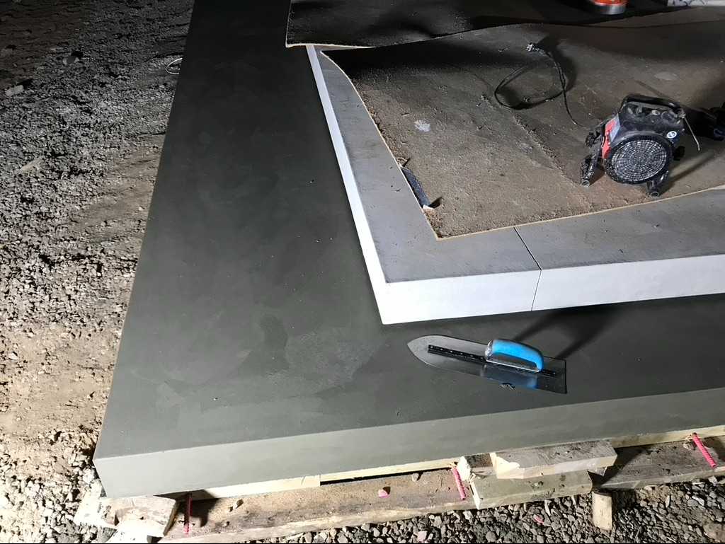Бетон (В25 и выше) мы заказываем на заводе, его привозят в автомиксере. После приемки бетона и до момента его твердения у нас есть несколько часов, в это время мы создаем всю красоту, пока бетон еще мягкий. В зависимости от типа и назначения конечного изделия применяются разные техники и инструмент. Как мы это делаем вы можете посмотреть на нашем YouTube канале, там показаны некоторые из техник приемки и финишинга бетона.