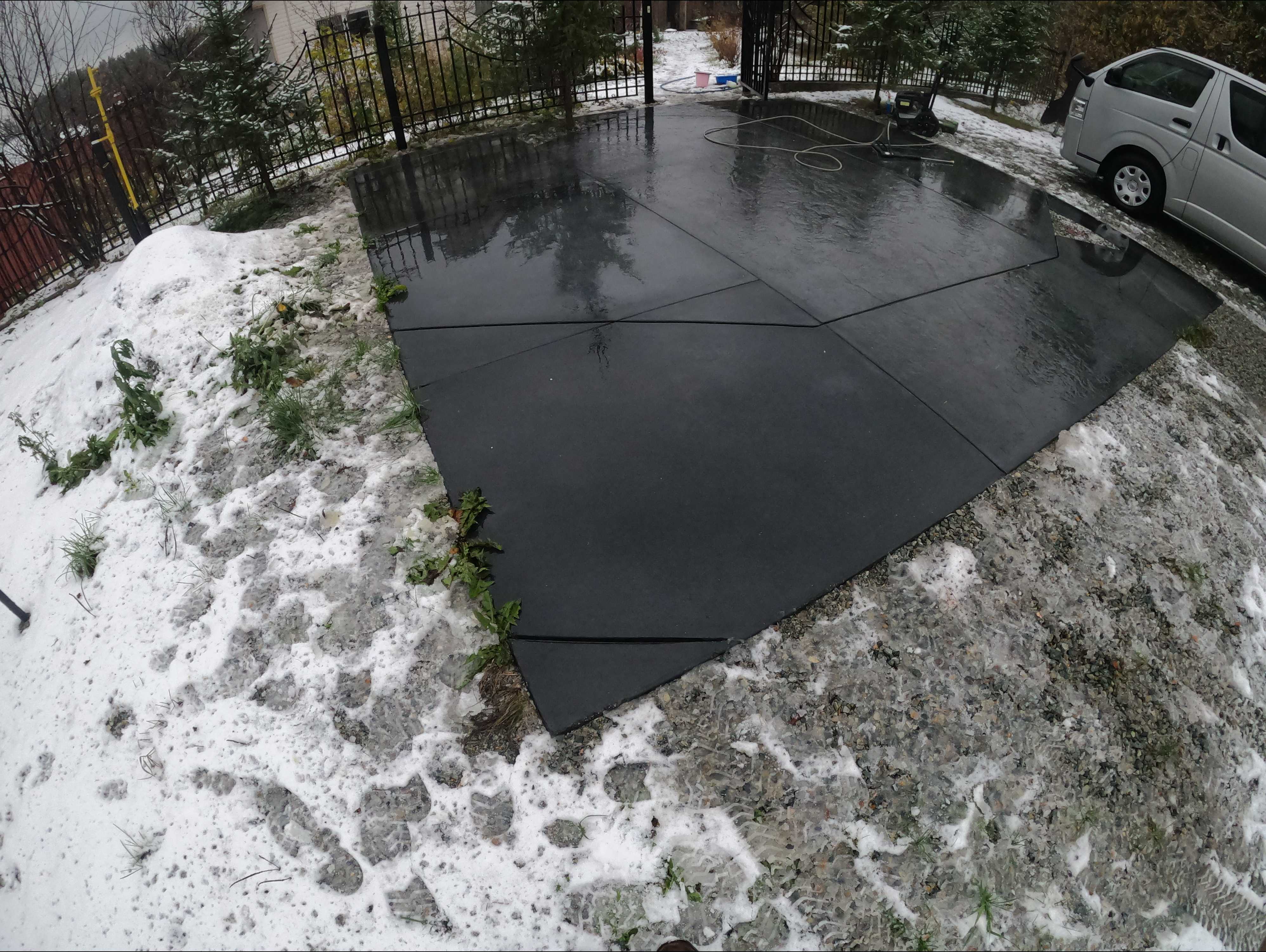 Когда бетон наберет полную прочность его следует покрыть гидрофобной пропиткой для бетона, это придаст ему защитные свойства.